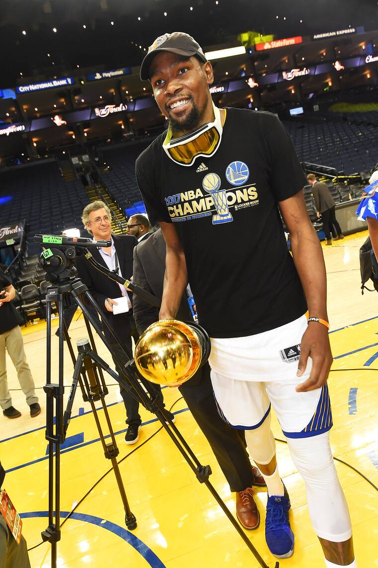 Con 39 puntos del astro Kevin Durant y 34 de Stephen Curry, los Golden State Warriors vencieron este lunes a los Cleveland Cavaliers 129-120 para alzar la corona en la final de la NBA al llevarse la serie por 4-1.
