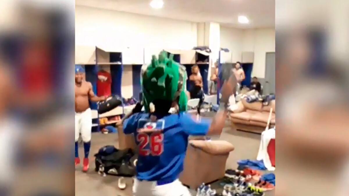 Luego de su victoria ante Tigres de Cartagena la noche del miércoles, los peloteros de Caimanes celebraron con música electrónica y saltando en el camerino su paso a la gran final del torneo profesional colombiano. Y claro, tampoco podía faltar la mascota.