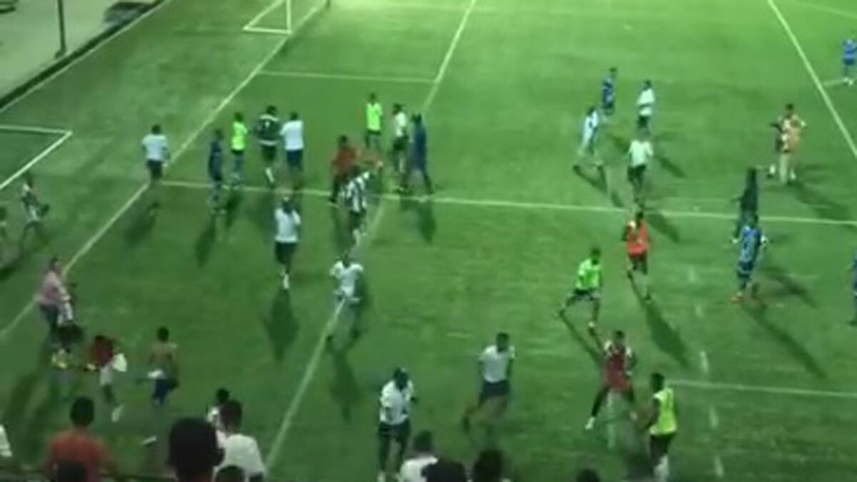 El duelo que ganaron los rojiblancos por marcador de 3-1, en la noche del lunes, y que le significó el título en esa categoría de la Liga de Fútbol del Atlántico, finalizó con una bochornosa y confusa batalla campal en el estadio Moderno.