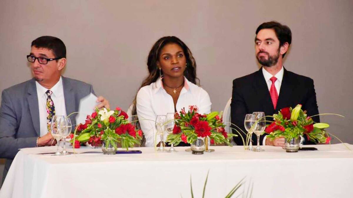 Caterine Ibargüen fue exaltada en la noche de este jueves en Barranquilla por la Universidad Ana G. Méndez de Puerto Rico, por su grado profesional en enfermería y su maestría en educación, en el marco de la apertura de la primera sede del centro universitario en Colombia.