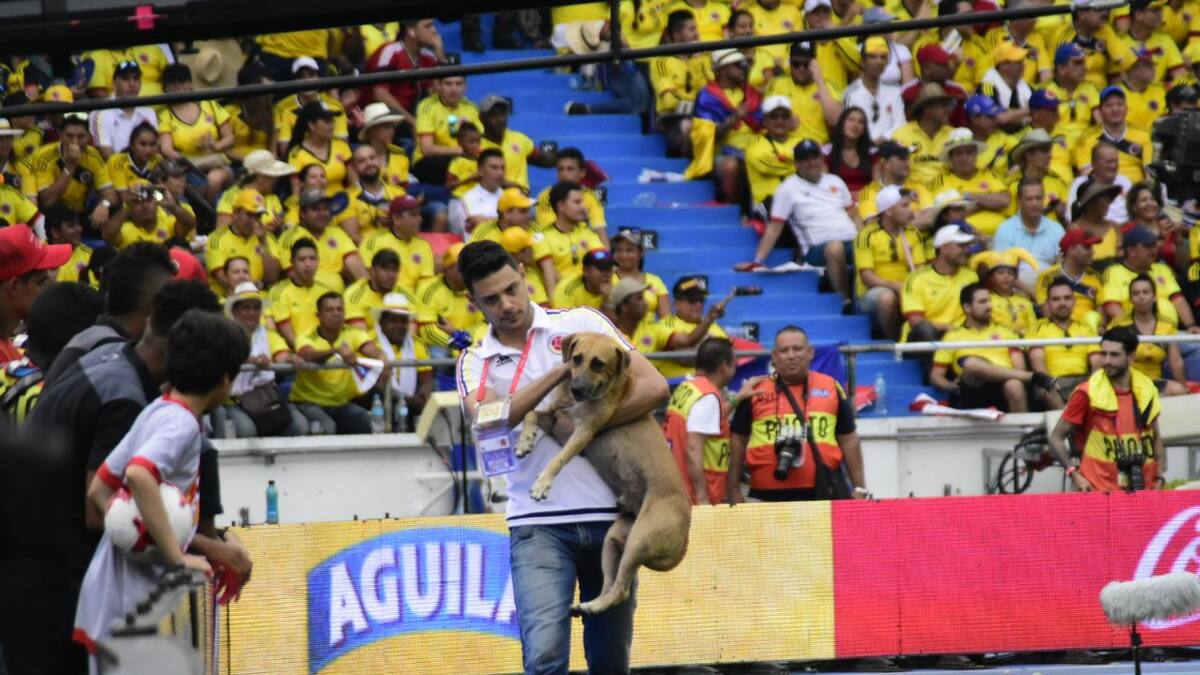Durante los últimos minutos del primer tiempo entre Colombia y Brasil, un perro se robó el protagonismo al invadir el terreno de juego. Durante su estadía en la cancha el animal distrajo a algunos de los jugadores.