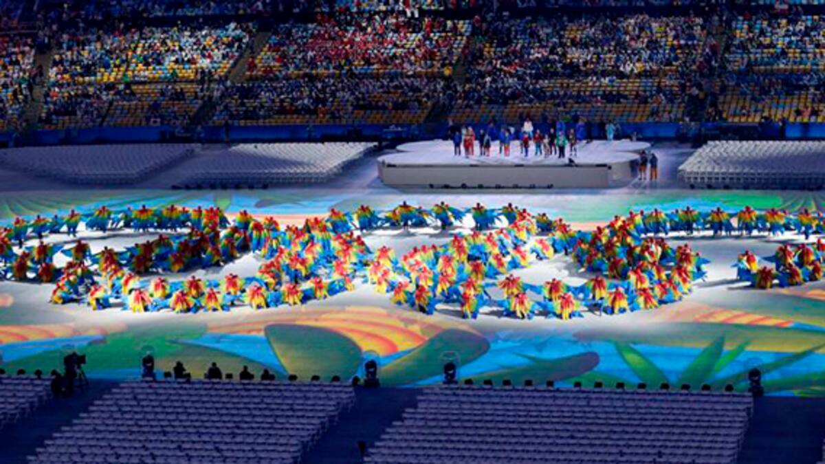 Inicialmente se recrearon sitios emblemáticos como Pan de Azúcar, Cristo Redentor y los Arcos de Lapa con los cientos de bailarines presentes en el estadio Maracaná, sede de la ceremonia. Posteriormente los participantes lucieron vestuarios coloridos representando unas guacamayas, que al finalizar representaros los aros olímpicos.