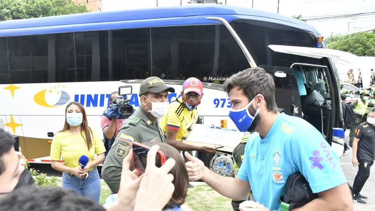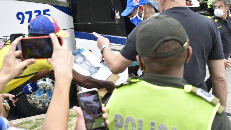 Y las largas horas de espera tuvieron su recompensa. Futbolistas como Alisson Becker, Gabriel Jesús, Thiago Silva, Neymar (que le firmó un retrato a un artista) se tomaron fotos y saludaron a los espectadores barranquilleros.