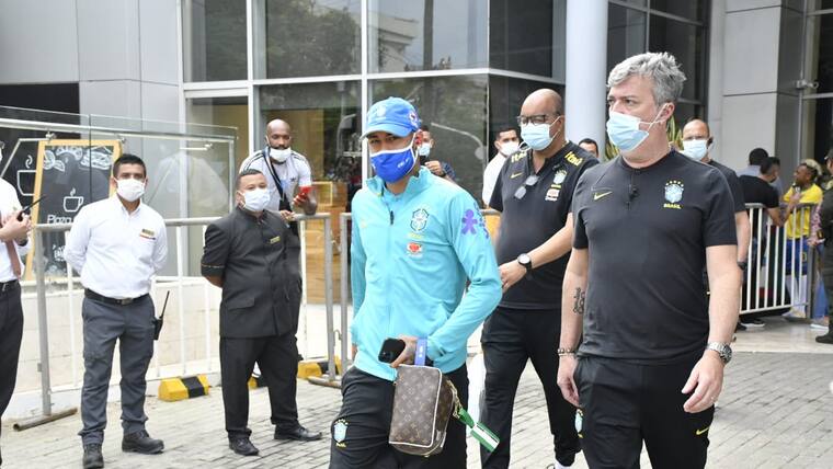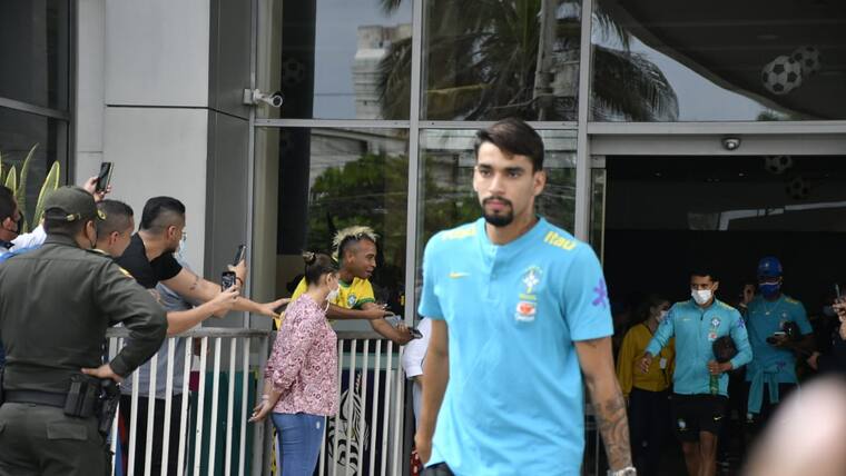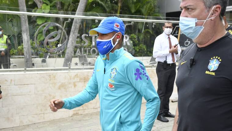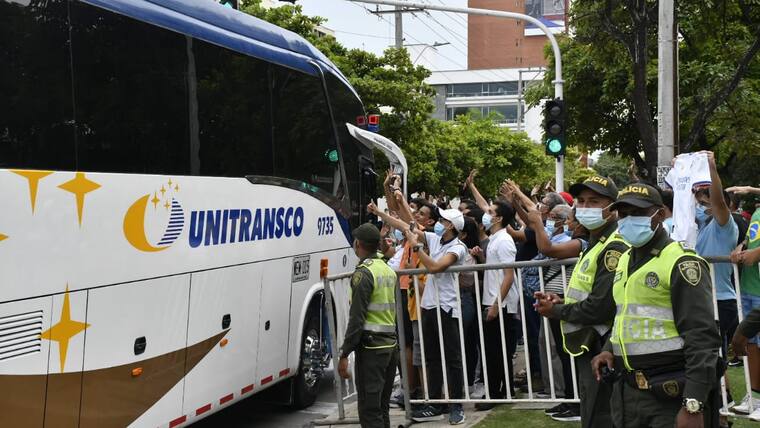 Con un riguroso operativo policial, la delegación brasileña salió del Hotel Estelar, en donde está hospedado para su importante partido ante la 'Tricolor'.