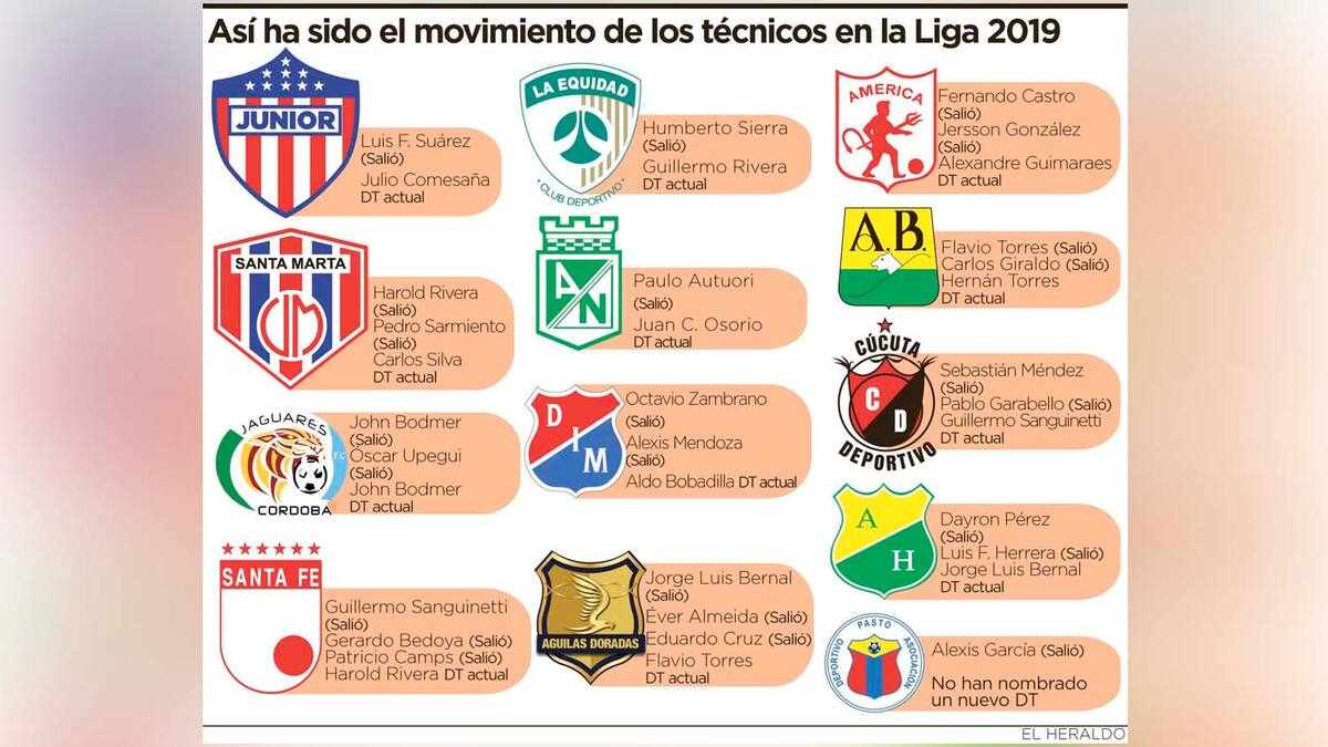 A estos tres equipos les siguen: Unión, Jaguares, Medellín, América, Cúcuta y Huila, todos con dos destituciones este año.