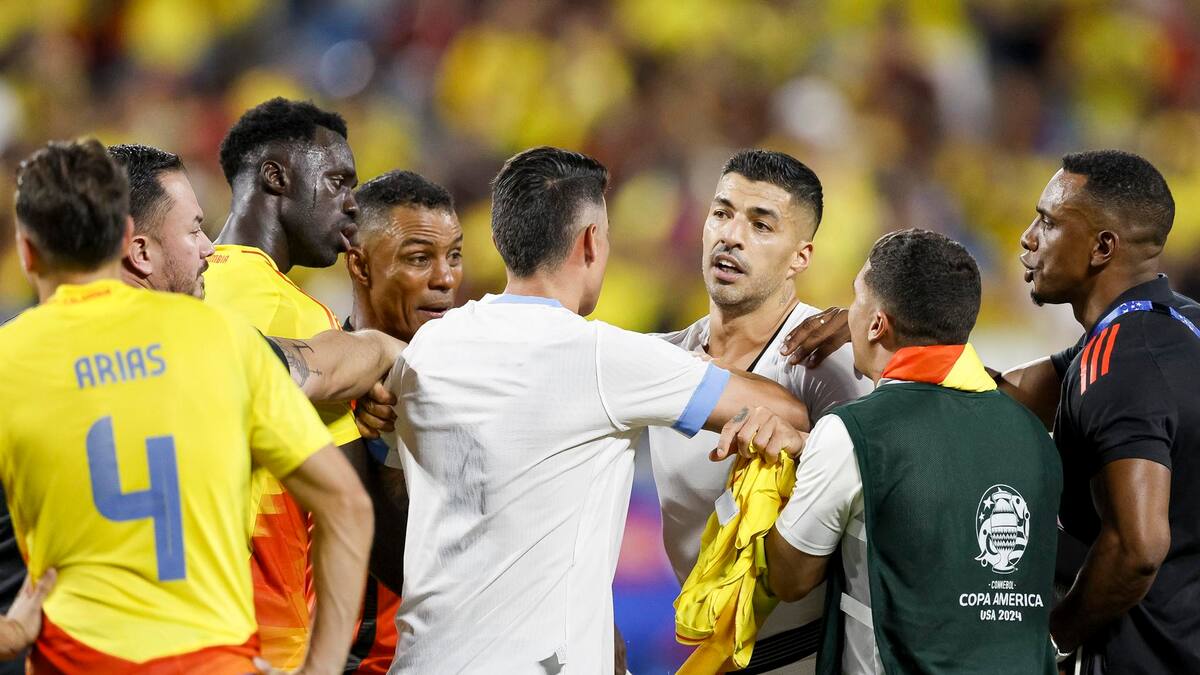 Uruguayos y colombianos terminaron a las manos después de que la cafetera eliminase a la celeste con un 0-1 en partido disputado en Charlotte (Carolina del Norte) este miércoles.
