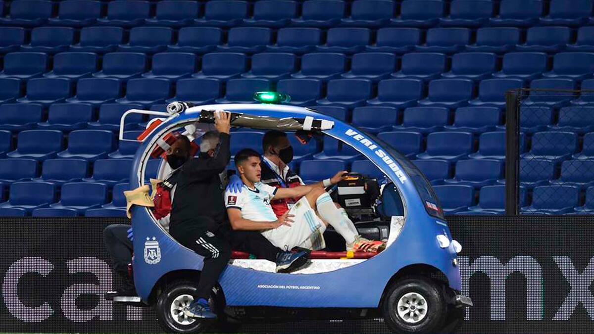 Palacios, centrocampista del Bayer Leverkusen, sufrió un 'traumatismo directo en la zona lumbar paravertebral izquierda, constatándose fractura de apófisis transversas de columna lumbar', según informó la Asociación del Fútbol Argentino (AFA), al ser golpeado con las rodillas por el paraguayo Ángel Romero.