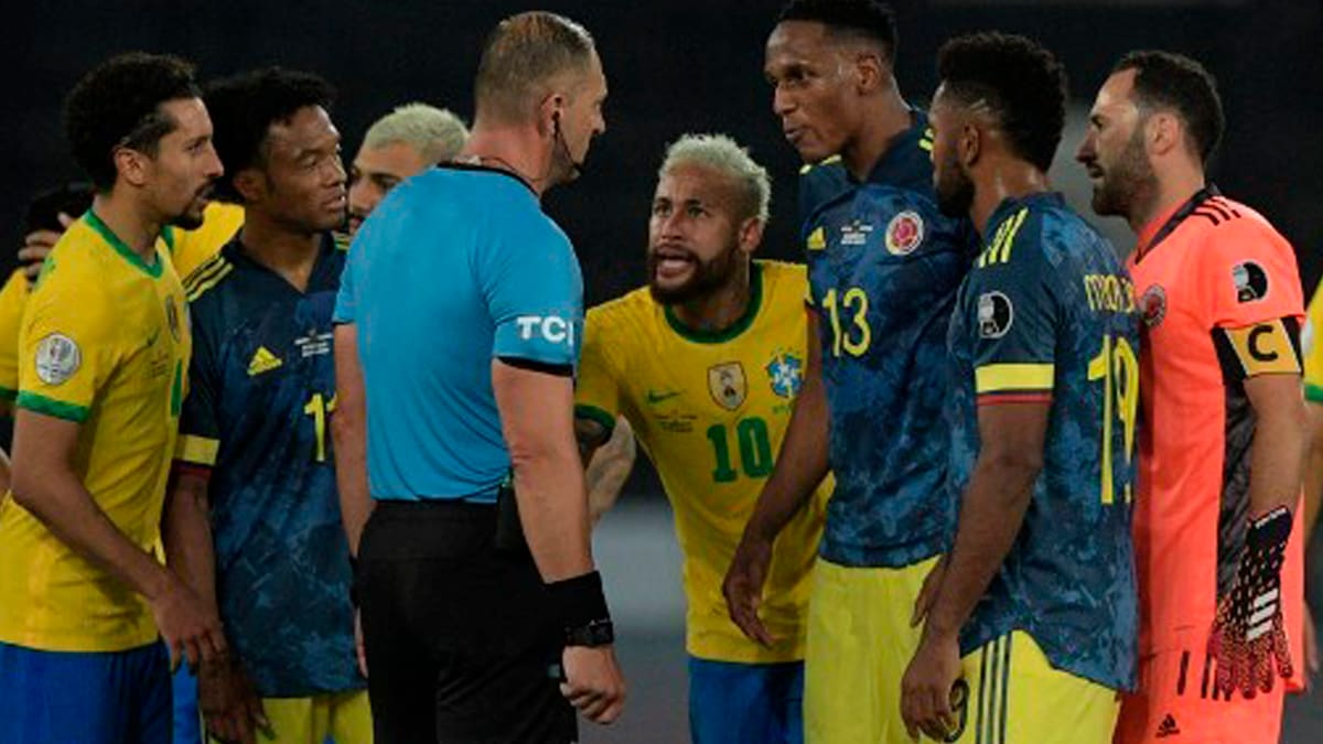 La Federación Colombiana de Fútbol informó este jueves que procedió a radicar ante la Conmebol una nota de protesta por el arbitraje durante el partido de Colombia-Brasil por la Copa América 2021.
