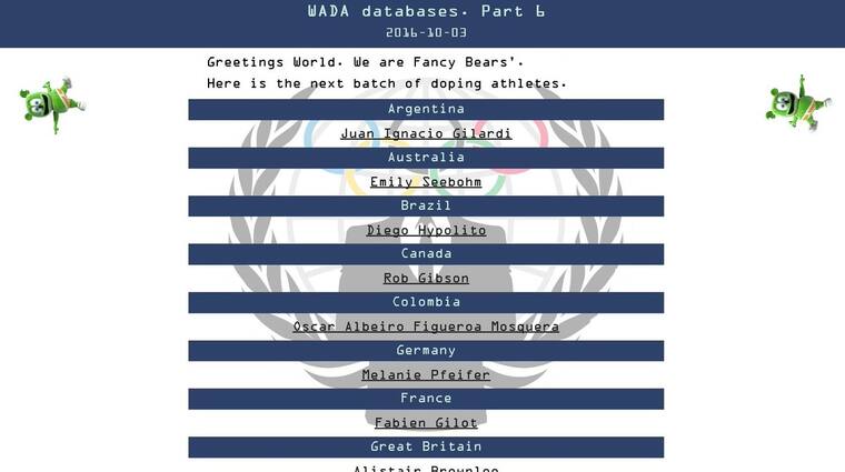 El grupo de 'hackers' Fancy Bears ha publicado la sexta parte de una serie de documentos que revelan el uso de sustancias prohibidas por deportistas olímpicos de varios países con el consentimiento de la Agencia Mundial Antidopaje (WADA, por sus siglas en inglés).