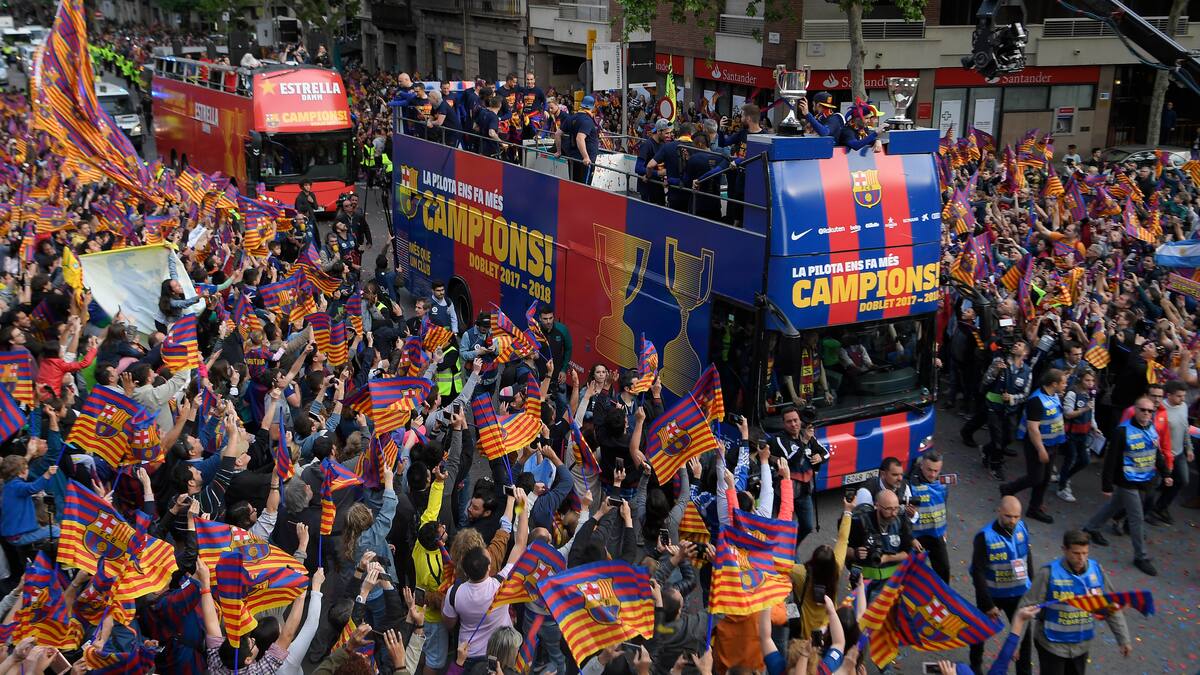 Aunque es únicamente la octava vez en la historia que el club azulgrana consigue este doblete, el habitual desfile de celebración por el centro de la ciudad catalana fue menos multitudinario y eufórico que en años anteriores, incluso por parte de los jugadores.