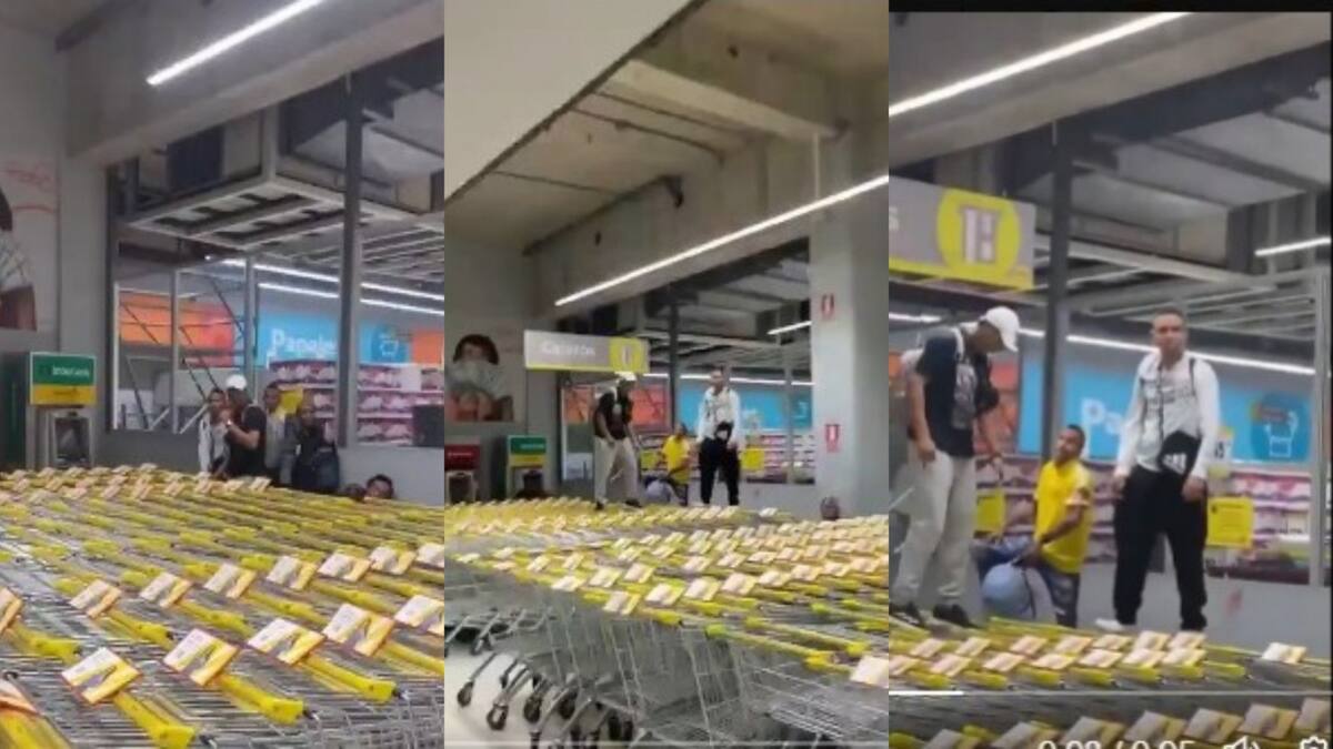 En varios videos que se han visto en las redes sociales, se puede ver como seguidores del ‘Poderoso de la Montaña’, le gritan varias cosas a los fanáticos del ‘Tiburón’, que se encontraban detrás de los carros de compras.