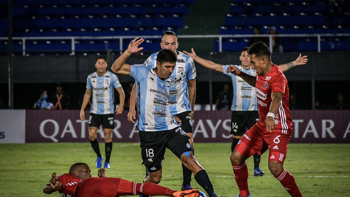 El equipo local se adelantó en el marcador con un gol de Mario Otazu a los 6 minutos, pero el DIM reaccionó en el mismo primer tiempo con los tantos de Pons, a los 33 y de Arregui a los 38 en el partido que se jugó en el estadio Defensores del Chaco de Asunción.