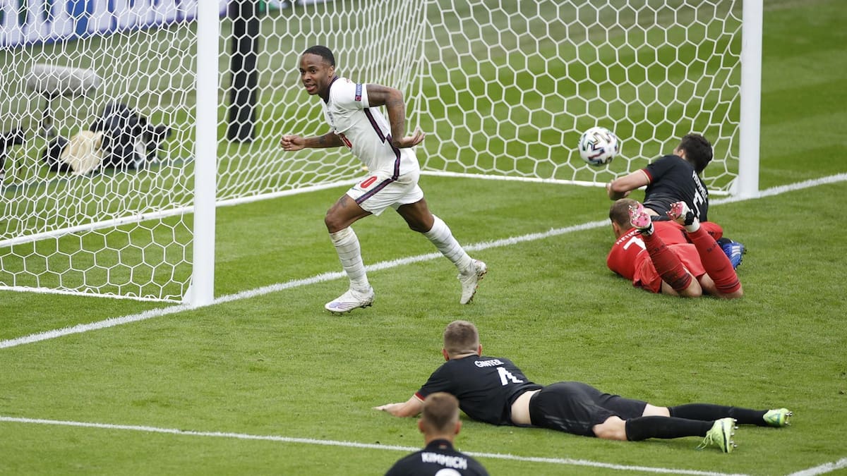 Un potente tiro de Sterling desde lejos, que desvió Neuer con suficiencia, sacó a los ingleses de su letargo. A lomos del revoltoso Saka, que ya fue el mejor de los suyos en el último partido frente a la República Checa, los ingleses percutieron por su banda derecha.