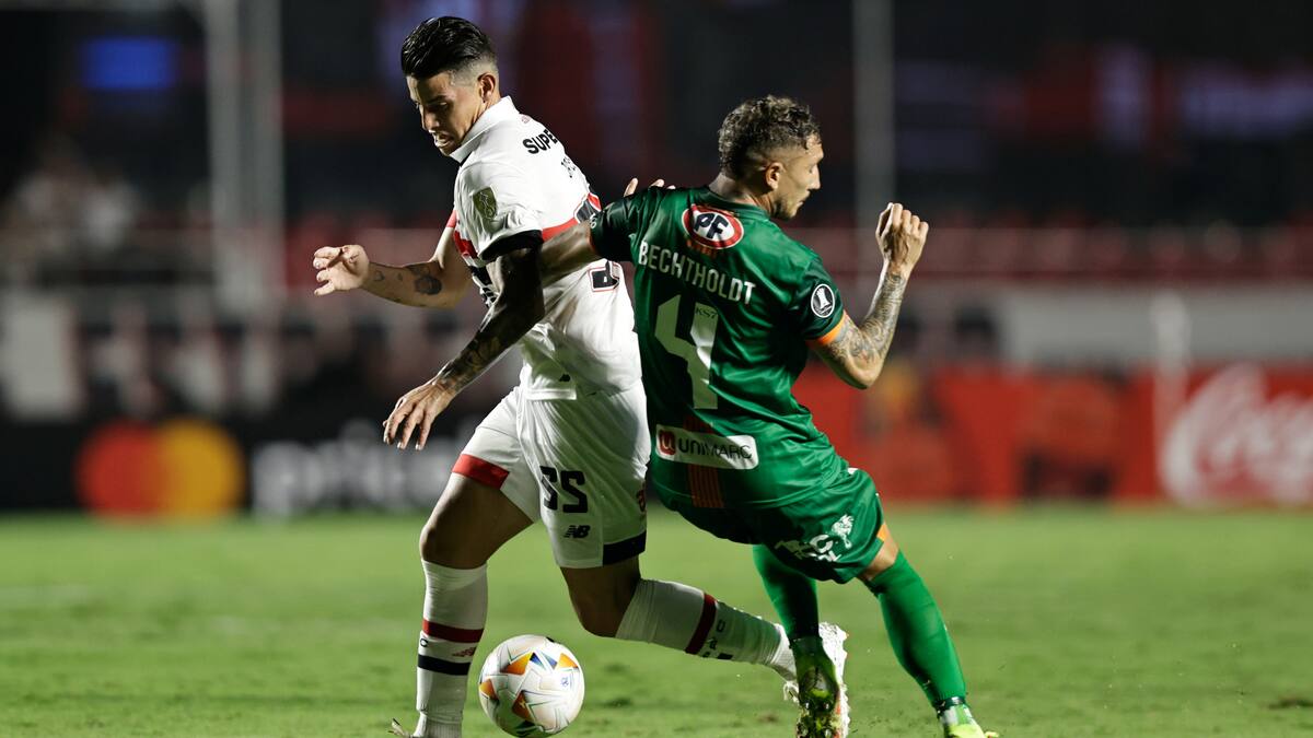 El mediapunta colombiano James Rodríguez fue titular y jugó casi todo el partido en el que fue fundamental para la primera victoria del Tricolor de Morumbí en esta edición de la Libertadores, luego de caer en su debut 2-1 a domicilio ante Talleres, que se mide al Barcelona de Guayaquil.