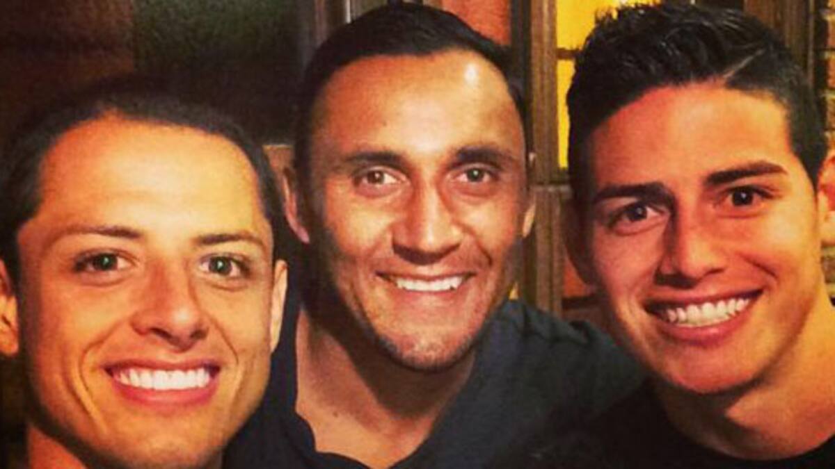 cena latinoamericana. James Rodríguez dedicó algunas horas libres en Madrid, y aprovechando la llegada del delantero mexicano Chicharito Hernández, para cenar con él y con el arquero costarricense Keylor Navas, otro de los nuevos refuerzos del equipo blanco.