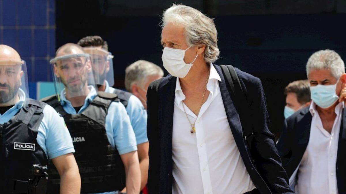 Varios de ellos han corrido junto a algunos periodistas junto al coche en el que salía del recinto Jorge Jesus, que ha rehusado hacer declaraciones.