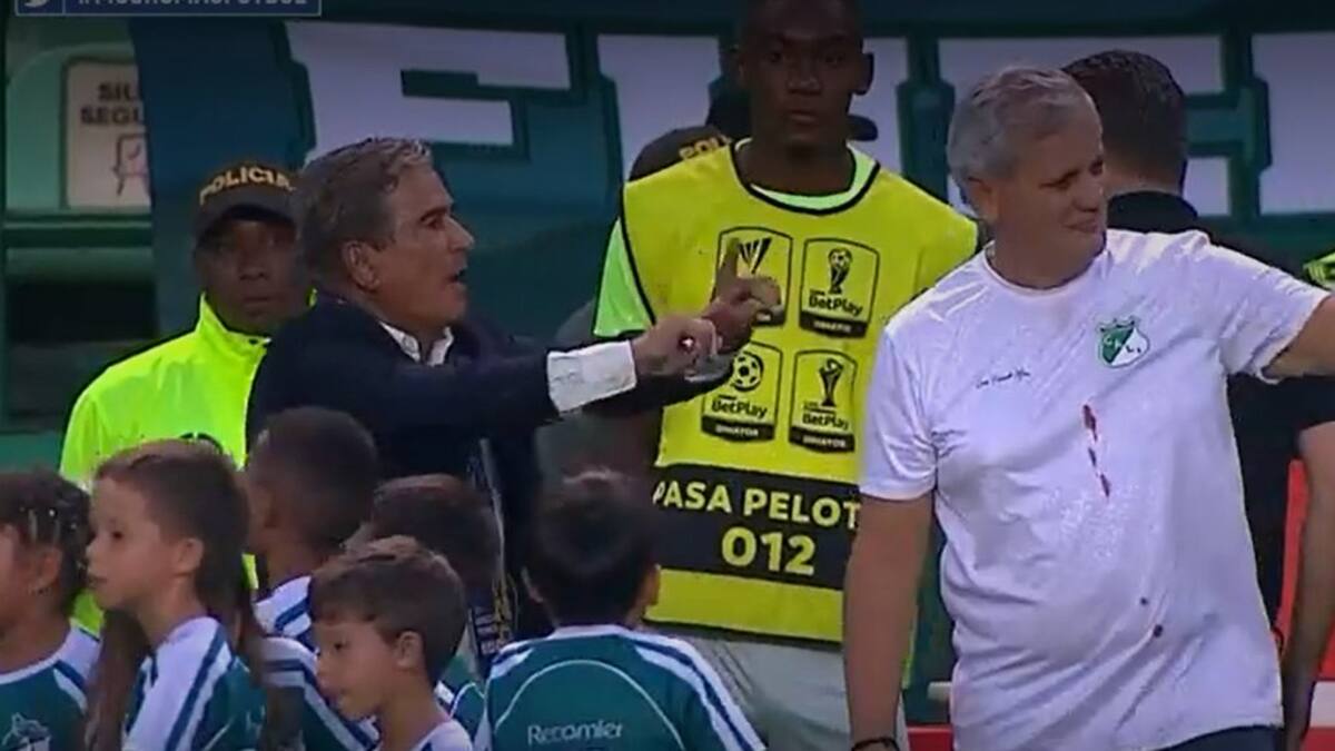 El entrenador antioqueño se acercó al banco de los caleños, pero el santandereano no salió a darle la mano.