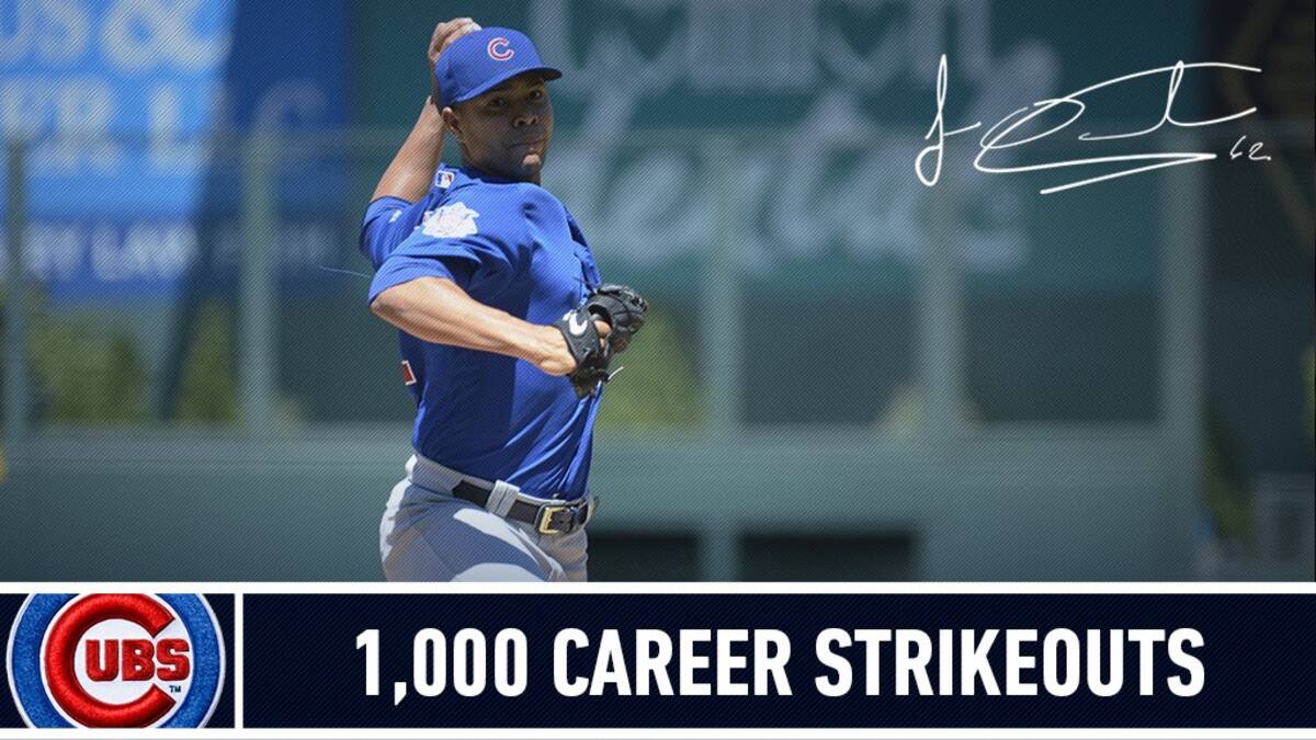 José Quintana fue el cuarto lanzador colombiano en llegar a las Grandes Ligas y el primero en integrarse a un selecto grupo de lanzadores zurdos en acumular 1.000 ponches en actividad logrado este domingo en la apretada victoria de su equipos Cachorros de Chicago que se impusieron 9 carreras por 8 a los Rockies de Colorado, ganando la serie al mejor de tres partidos en el estadio Coors Field.