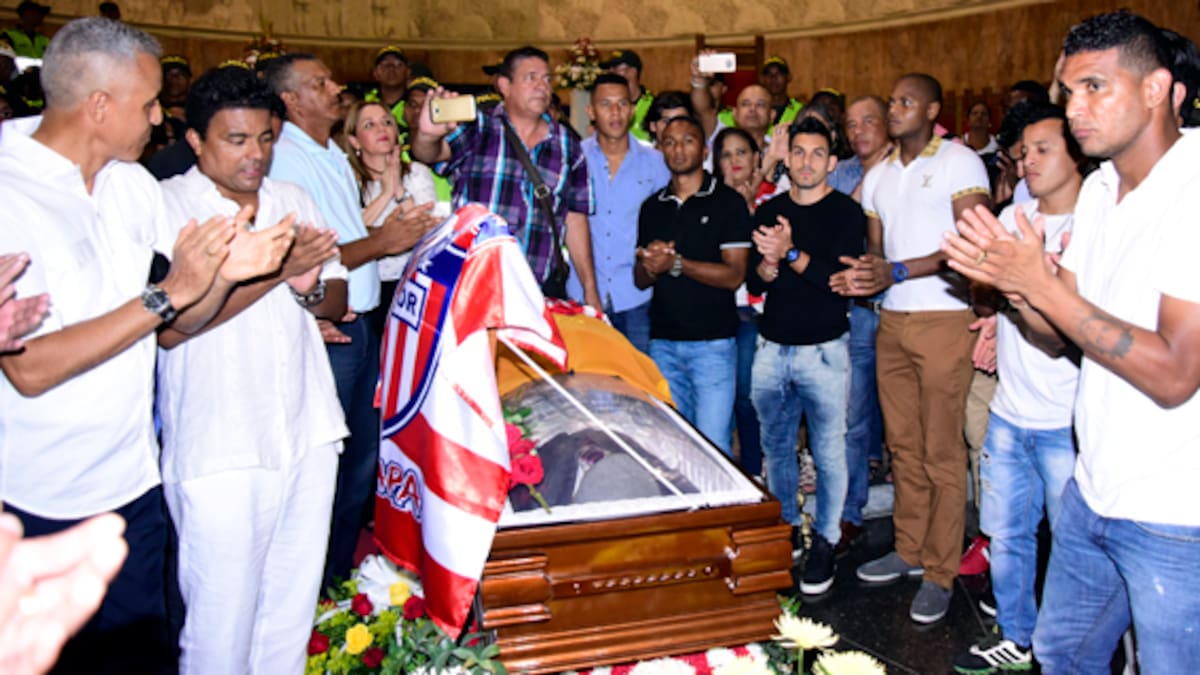 Alrededor de las 7:30 p.m., el director técnico Alexis Mendoza, junto a sus pupilos, rodearon el féretro donde se encontraba ‘El Campeón’. Sydar Perea, hijo del fallecido, recibió el pésame por parte de la plantilla y el entrenador.