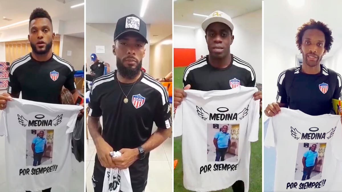 Miguel Borja, Luis ‘Cariaco’ González, Carmelo Valencia y Didier Moreno posaron con una camiseta con la imagen de Jorge Luis y con las siguientes palabras: 'Medina por siempre'.