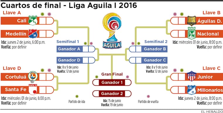El ganador de la llave de Junior - Millonarios se enfrentará al triunfador de la llave B, Nacional o Rionegro.