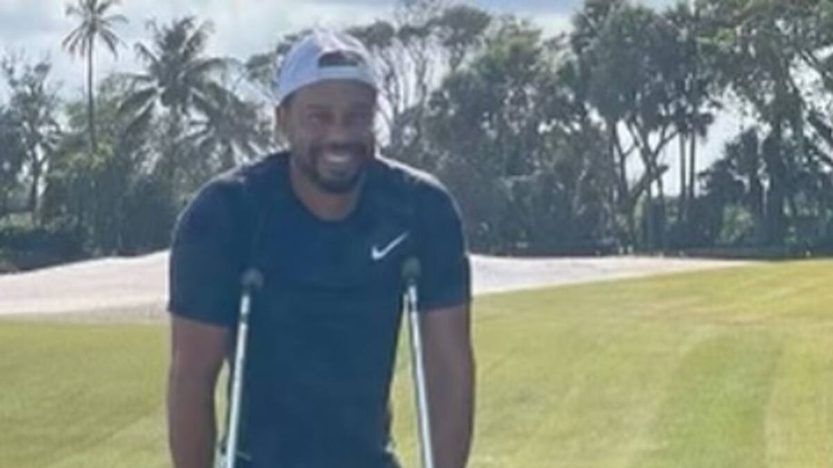 El golfista estadounidense Tiger Woods publicó este viernes una foto en su red social de Instagram en la que aparece con muletas y sonriendo en el jardín de la residencia que posee en Jupiter (Florida).