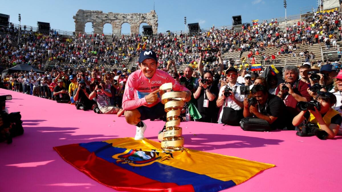 Carapaz ya escribió su nombre en la historia del ciclismo de su país cuando en 2018 ganó una etapa del Giro, convirtiéndose en el primer ecuatoriano en ganar una etapa en las tres Grandes Vueltas. Ahora lo ha hecho con letras doradas, o de color rosa, como la 'maglia' que probablemente pasará a decorar las paredes de la humilde casa familiar de la aldea andina de Playa Alta.