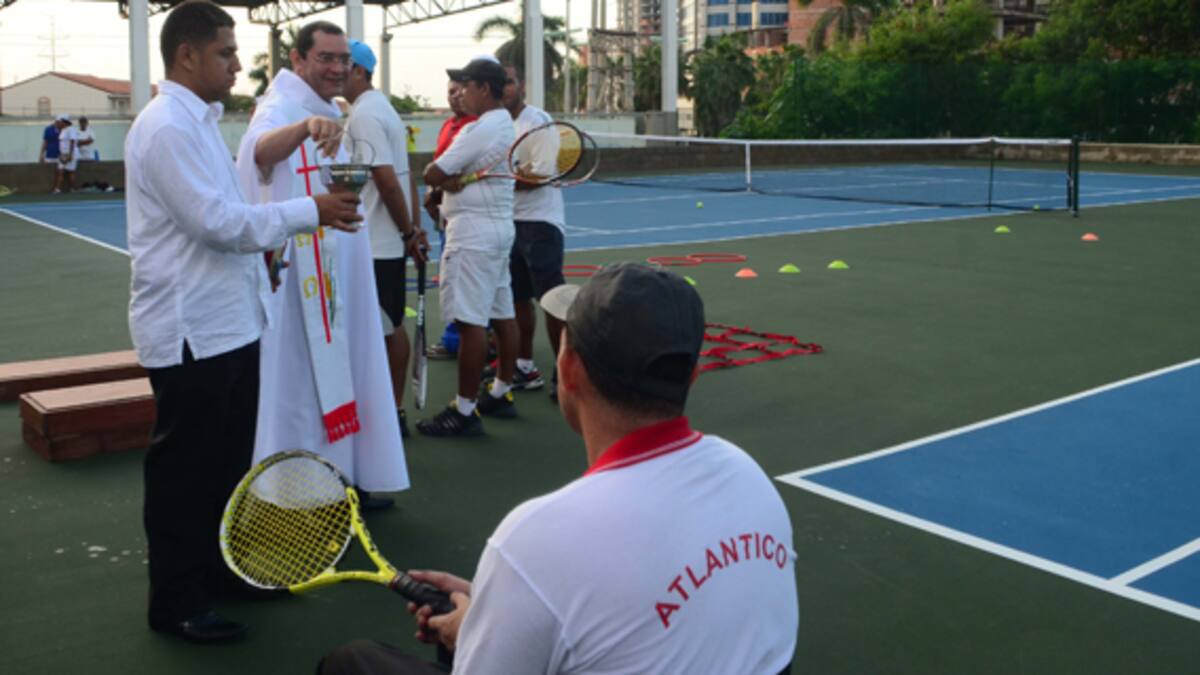 Tras un proceso de construcción de cuatro meses por un valor aproximado de 180 millones de pesos, las citadas canchas recibieron la bendición de parte del director de Pastoral Social, Fidel Iglesias, el pasado sábado, con la presencia del secretario distrital de deportes, Joao Herrera Olaya; la directora ejecutiva de la Liga de Tenis del Atlántico, Margarita de Duncan; y demás miembros de la rectora del deporte de la raqueta.