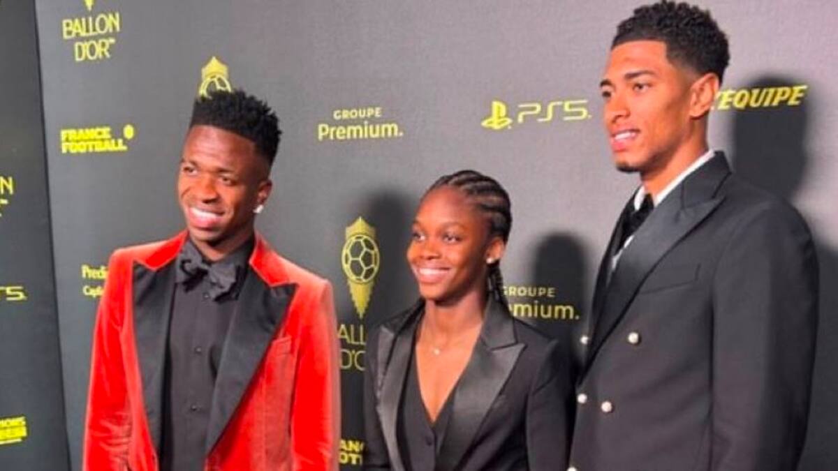 La delantera llegó a la gala acompañada de jugadores del Real Madrid, Vinicius y Jude Bellingham. Cuando los presentadores del evento empezaron a dar la entrada a los que tenían posibilidades de ganar ella ingresó junto al extremo brasileño.