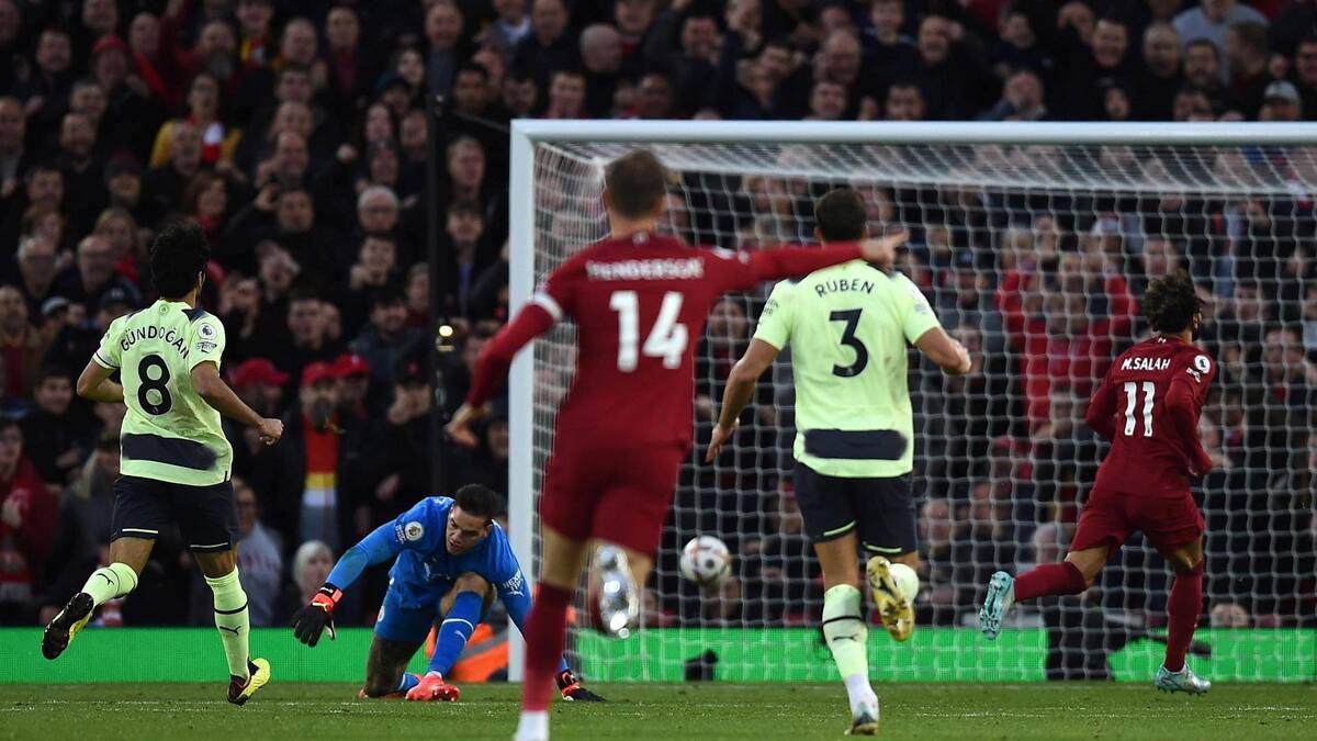 La jugada realzó y reivindicó a un futbolista magnífico, pero también señaló al lateral portugués, otro fenomenal jugador, mejor en el ataque que en defensa, como evidenció una acción que había surgido de una falta a favor del grupo dirigido por Pep Guardiola: Kevin de Bruyne la colgó al área, demasiado floja, a las manos de Alisson, que puso en marcha el contragolpe con el saque largo que ganó Salah a Cancelo y que supuso el 1-0 en el minuto 75, entre la apoteosis del público de Anfield, tan necesitado de una reivindicación.