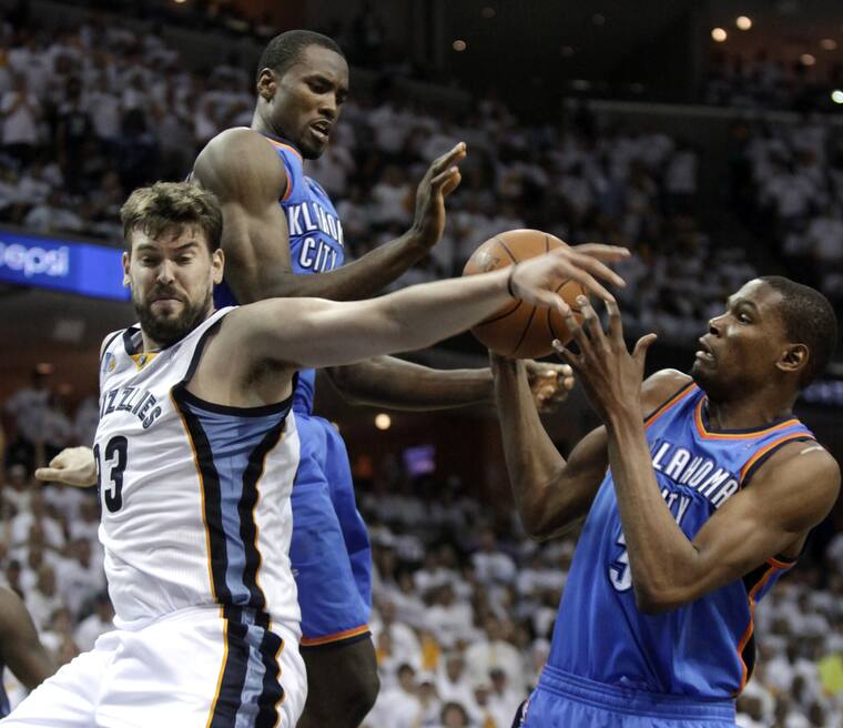 Zach Randolph logró ayer 21 puntos y un récord de Memphis con 21 rebotes y los Grizzlies se recuperaron de una desventaja de 16 puntos para derrotar 101-93 en tiempo extra al Thunder de Oklahoma City y ponerse 2-1 arriba en su semifinal de la Conferencia Oeste.