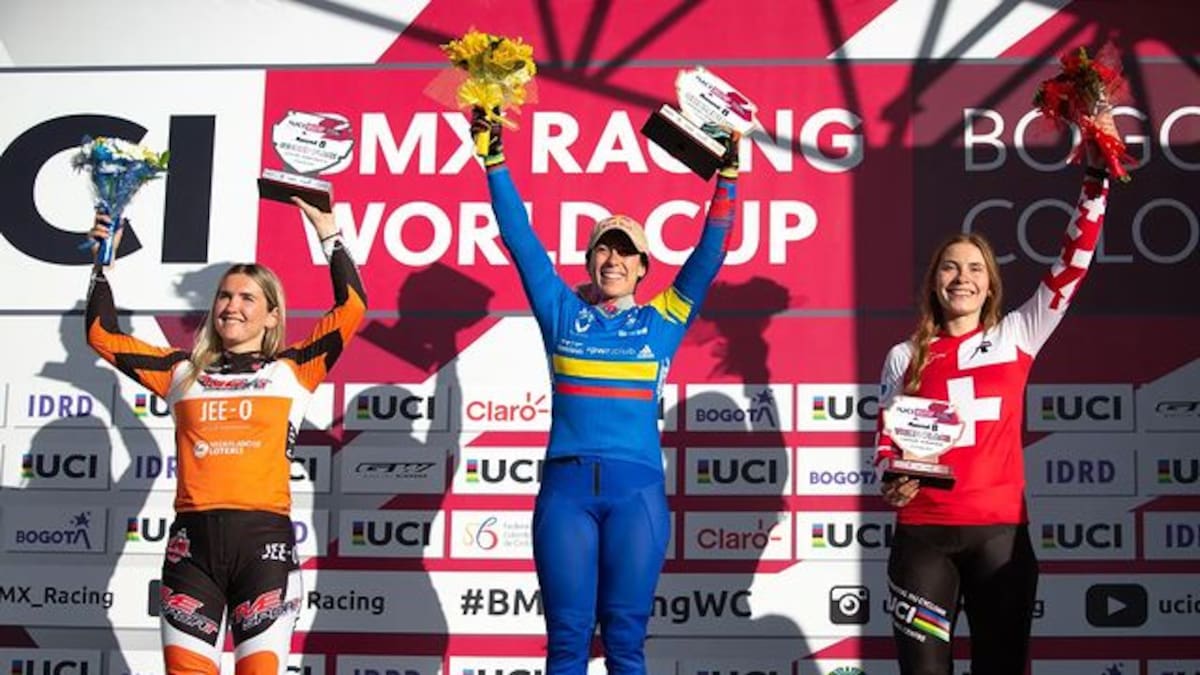 Este domingo, la colombiana Mariana Pajón consiguió el oro en la última ronda del Mundial UCI BMX que concluyó en Bogotá. Una vez más, la doble medallista olímpica logra dejar en alto el país y acrecentar su nombre en la historia de este deporte, donde logró superar a la neerlandesa Merel Smulders con una clara ventaja.