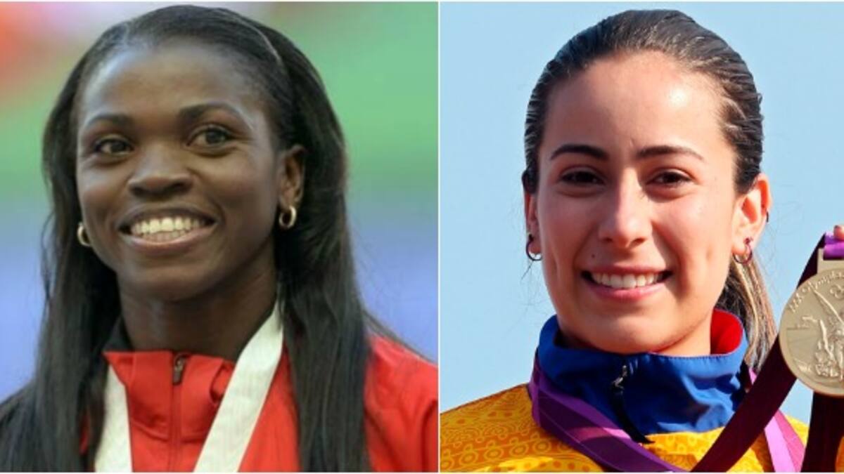 De izquierda a derecha: Caterine Ibargüen, Jossimar Calvo y Mariana Pajón.