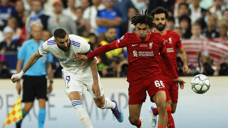 El VAR salvó al Liverpool. Con cuatro minutos para decidir si la posición era legal o no. Una acción de interpretación que decidieron desde una sala y no el colegiado a centímetros en el momento en el que, tras el recorte de Benzema en la primera llegada de peligro madridista, la lucha de Valverde provocó que tocase el balón, la jugada se trabase y fuese Fabinho el que acababa dando un pase de gol a Karim. Un balón rebotado. Una decisión que condiciona una final. Salvo cuando la juega el Real Madrid.