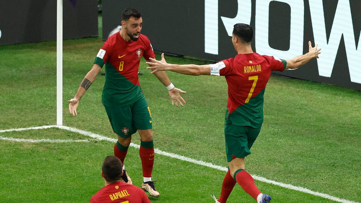 Portugal: Diogo Costa; Cancelo, Pepe, Ruben Dias, Nuno Mendes (Guerreiro, m. 42); William Carvalho (Palhinha, m. 82), Rubén Neves (Rafael Leao, m. 72), Bernardo Silva; Bruno Fernandes, Cristiano Ronaldo (Gonçalo Ramos, m. 82) y Joao Félix (Nunes, m. 82).