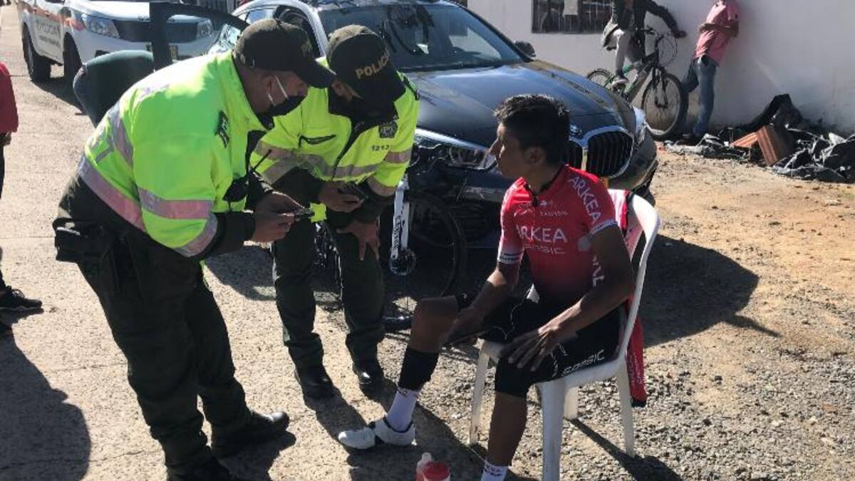 'Se vino detrás, no tuve cómo verlo ni nada, iba por la línea blanca y me atropelló. Tengo un pequeño raspón, un golpe en la rodilla derecha y otro golpe en el muslo izquierdo, que fue donde choqué contra el espejo retrovisor del vehículo que me atropelló', aseguró Quintana en un video compartido por su equipo.
