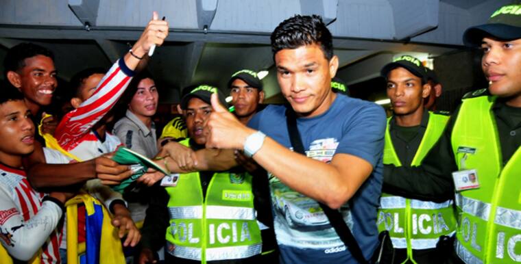 Una decena de hinchas arropó anoche al delantero barranquillero Teófilo Gutiérrez a su arribo a La Arenosa. Teo sintió de inmediato el calor humano de una hinchada que lo admira, por encima de cualquier cosa. Su cara reflejaba felicidad y tranquilidad. La alegría de estar nuevamente en casa se notaba con cada gesto que realizaba.