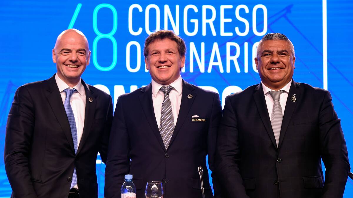 'Como nosotros creemos en grande y porque queremos hacer justicia, te pedimos que el mundial 2022 ya se juegue con 48 equipos', dijo el presidente de la Conmebol, Alejandro Domínguez, al entregar una carta con el pedido al titular de la FIFA, Gianni Infantino.