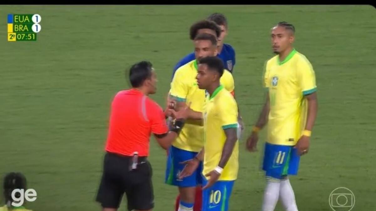 Rodrygo Goes y Lucas Paquetá hablaban entre ellos para saber quién cobraría el tiro libre, cuando los responsables del VAR le pidieron al árbitro ir al monitor. Lo insólito de la situación es que la llamada a Martínez solo se podría haber hecho, en este caso, si era para evaluar una posible tarjeta roja al jugador de estadounidense que hizo la falta.