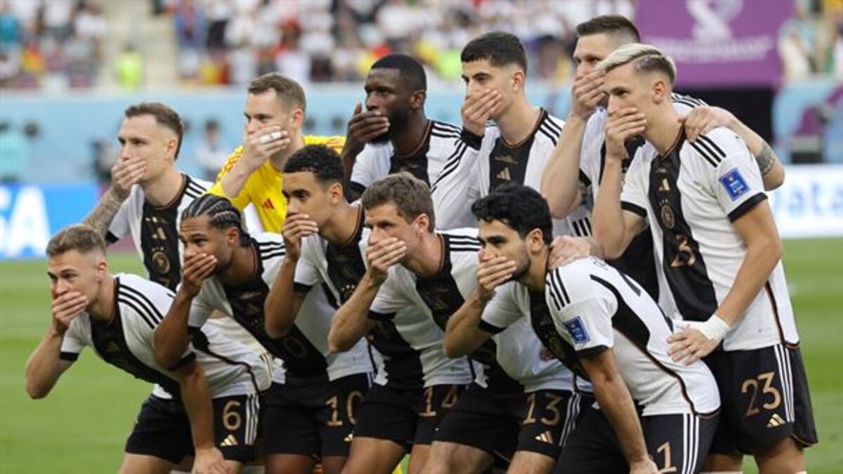 Este miércoles los jugadores de la selección de Alemania decidieron cubrir su boca antes del comienzo del juego ante Japón.