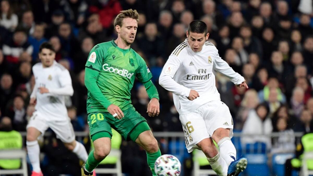 El colombiano James Rodríguez fue el primero en probar a Remiro con un disparo raso ajustado al palo (36), Federico Valverde volvió a ponerlo a prueba con tiro desde la frontal (38) y Marcelo prácticamente en boca de gol volvió a encontrarse con el meta de la Real (43).