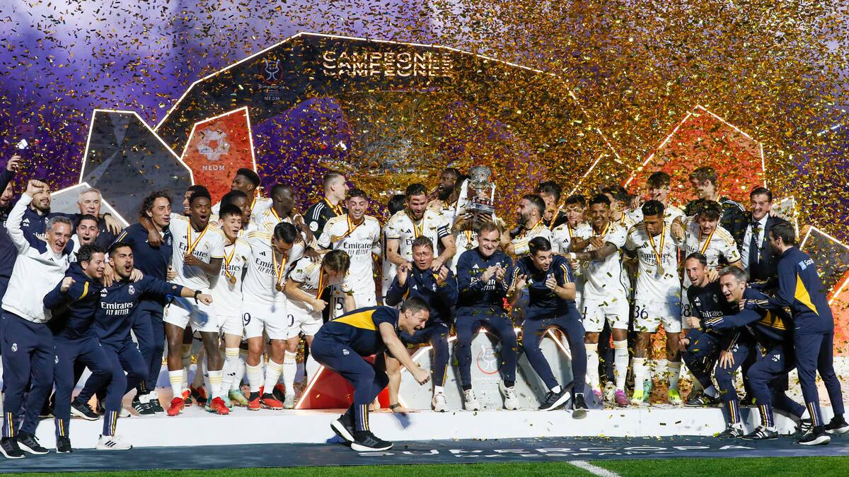 El Real Madrid celebró su decimotercera Supercopa de España sobre el césped del estadio Al-Awwal Park, ante el Barcelona que esperó a que Nacho Fernández recogiera el primer trofeo como capitán y lo levantase junto al resto de sus compañeros al cielo de Riad.