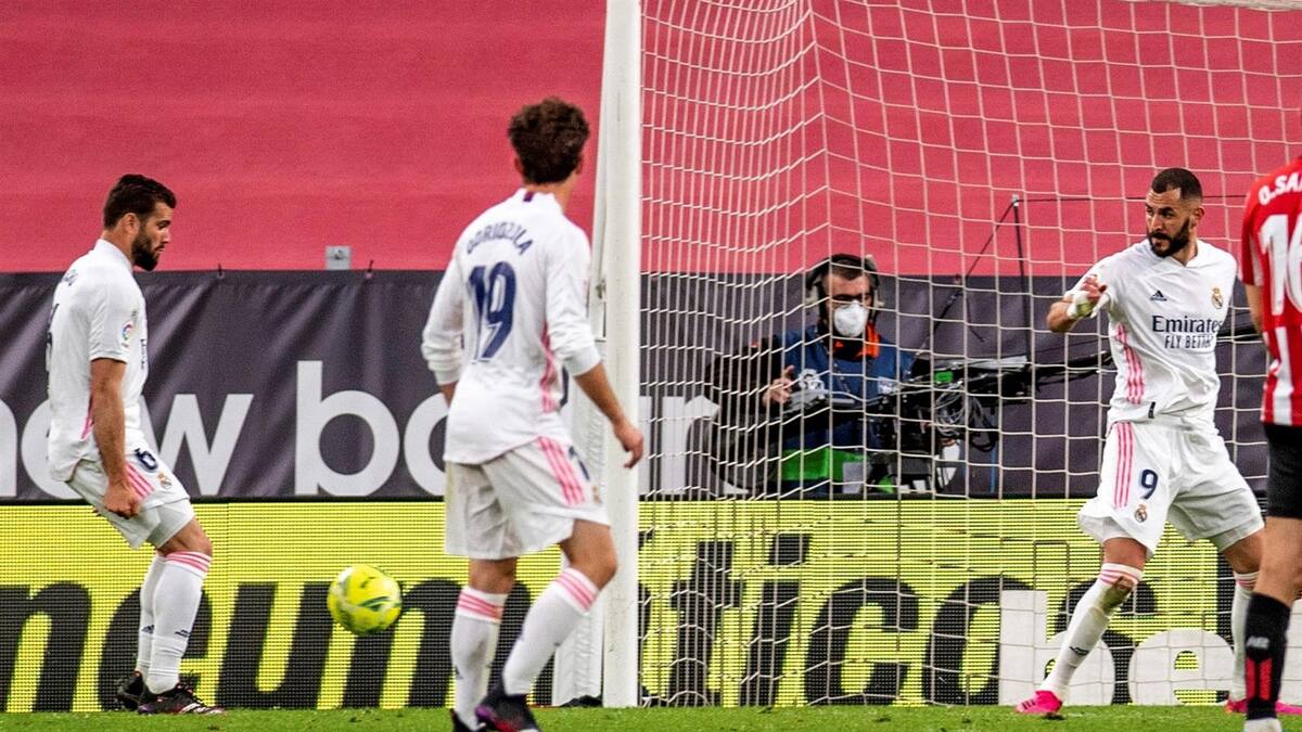 Ese tanto y el gol de Osasuna en el Wanda le alegraron la vida al Madrid, al que, no obstante, le quedaba sufrir. En San Mamés con dos ocasiones del Athletic que marcharon fuera tras remates de Villalibre, forzado, y Vesga, desviado, a buenos centros de Ibai y Unai López.