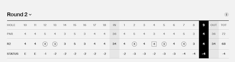 El golfista barranquillero, radicado en Miami, completó una segunda ronda con 68 golpes bajo par (-4), con lo cual superó por un impacto el recorrido del primer día, cuando firmó una tarjeta de 69 golpes (-3).