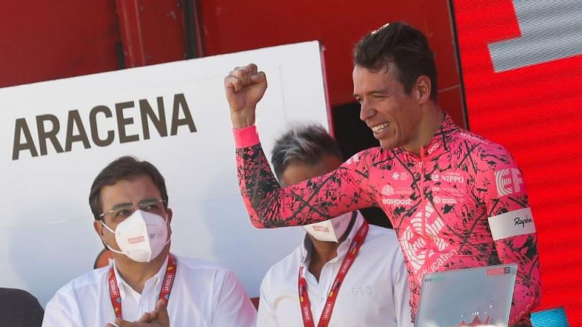 Este miércoles Rigoberto Urán del equipo EF Education Easy Post alcanzó su primera conquista en la Vuelta España, tras obtener la etapa número 17 disputada entre Aracena (Huelva) y el Monasterio de Tentudía (Badajoz), de 162,3 km.
