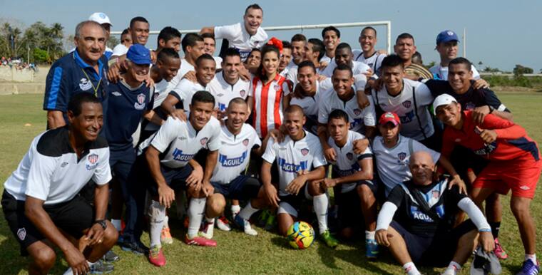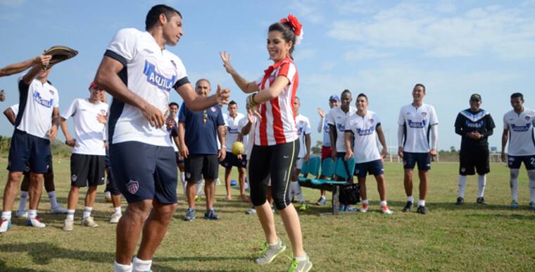 La reina no solo hizo piruetas con el balón, también se atrevió a cobrarle penales al cancerbero Sebastián Viera, a quien le marcó en una oportunidad. 'Vine a traer mi alegría carnavalera para que gocen y bailen un ratico. Espero que vayan con todo para el juego ante Itagüí. Me toca practicar más los penales para que en la próxima oportunidad le pueda convertir todos los penales a Viera. Soy juniorista de nacimiento y espero que mi presencia aquí sirva para que ellos ganen este campeonato', sentenció la soberana del Carnaval de Barranquilla.