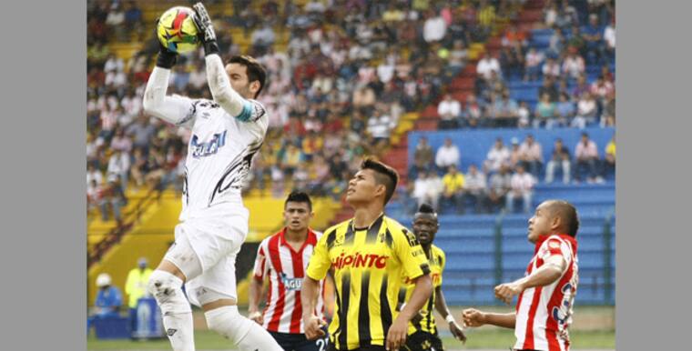 Primer tiempo. Pocas emociones nos regaló el inicio del juego en el estadio Álvaro Gómez Hurtado. Solo hasta el minuto 13, el local se arrimó al pórtico rojiblanco, exigiendo al arquero Sebastián Viera, que envió al tiro de esquina un remate de volea del delantero Juan Sebastián Herrera.
