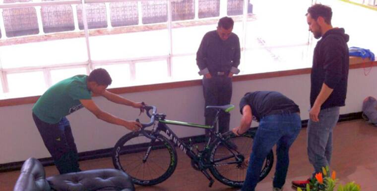 Cuando EL HERALDO intentó abordarlo para conseguir algunas declaraciones, el ciclista colombiano amablemente respondió: 'Amigo, no tengo permitido hablar. Si no con mucho gusto'. Protocolo que confirmó su acompañante. 'Es que el equipo no lo deja. Por eso tampoco pueden tomarle fotos a la bicicleta', afirmó.