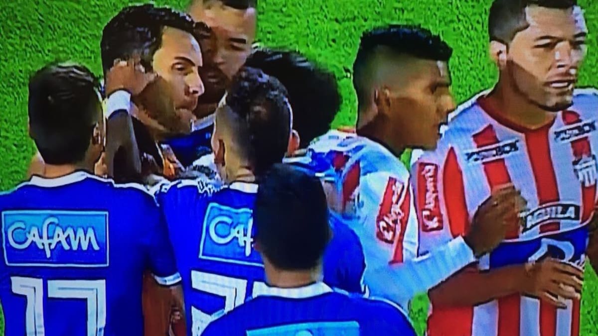 Domínguez, lateral de los azules, esquivó la tarjeta roja en pleno partido cuando provocó la reacción de Viera al agarrarle una oreja en medio de una protesta de los Tiburones al árbitro Luis Sánchez. ‘Carachito’ logró gambetear la vista del juez central, pero no las cámaras de televisión y el castigo: dos fechas sin acción y una multa de $338.538.