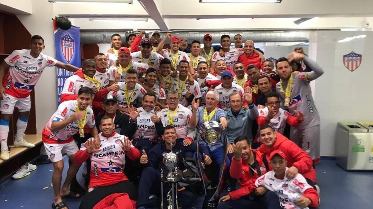 La ‘novena’ se celebró a rabiar. Los jugadores del Junior se disfrutaron la estrella de principio a fin, primero en el gramado del estadio El Campín, junto a sus familiares y la hinchada rojiblanca, y luego en el camerino, donde de la oración pasaron al festejo enloquecido por el bicampeonato.